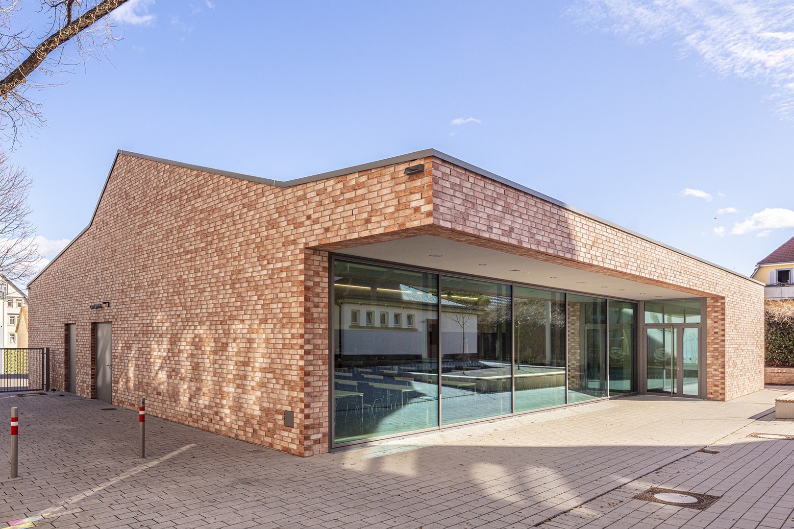 Der Blick auf die neue Mensa vom östlichen Schulhof aus.