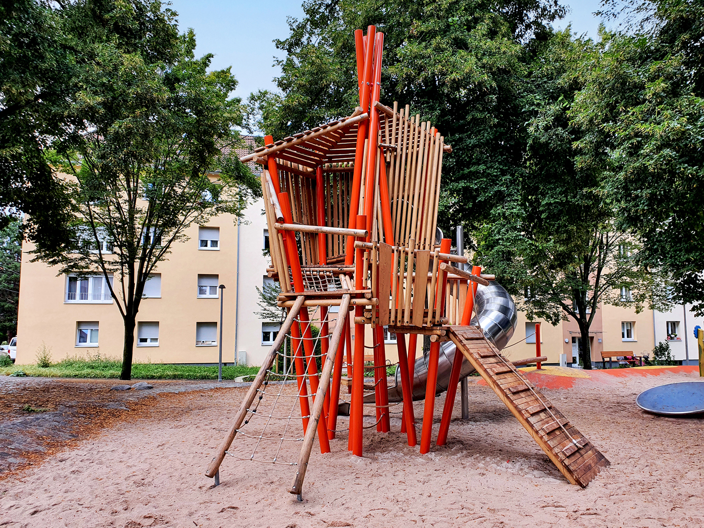 In den Beteiligungsformaten "Forschertag" und "Ideenwerkstatt mit Modellbau" hatten Kinder und Jugendliche 2018 mit viel Begeisterung und Kreativität ihre Vorstellungen von einem Wunschspielplatz eingebracht. Auch die Eltern wurden befragt. Alle gemeinsam wollten ein Angebot für alle Altersgruppen schaffen und durch hohe Aufenthaltsqualität die Funktion der Fläche als Treffpunkt für Familien stärken. Zusammen mit dem von der Stadt beauftragten Büro kienleplan, dem Jugendamt sowie der Kinderkultureinrichtung Karamba Basta wurden viele Vorschläge und Ideen gesammelt, die nun weitgehend umgesetzt sind.