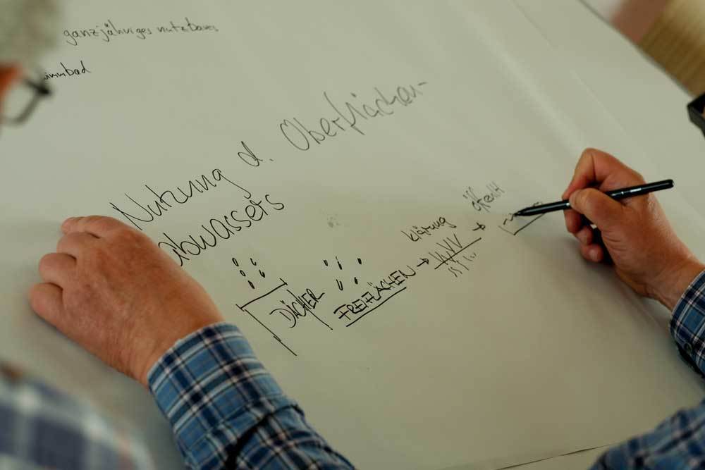 - Alle eingebrachten Interessen und Bedürfnisse wurden zu einer Interessensammlung gebündelt. Sie bildet die Grundlage für den Kriterienkatalog, der festlegt, welche Kriterien bei zukünftigen Planungen, Entwürfen und Beteiligungen zu beachten sind. Die Interessen der Bürger wurden außerdem zu Leitplanken verdichtet, die in das abschließende Memorandum einfließen.