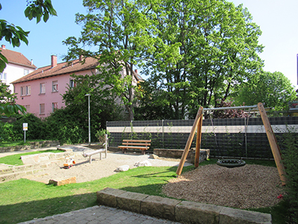 Ein neuer Weg soll die Untere Straße mit dem Nesenbachweg verbinden. Der bestehende Sitzbereich wird durch eine neue Möblierung und Spielgeräte aufgewertet. Ein zusätzlicher Spielbereich mit Klettermöglichkeit (z.b. einem Baumhaus) erhöht die Aufenthaltsqualität.