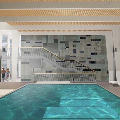 Die Vorgabe an die Planer war, den in der Stuttgarter Bäderlandschaft einmaligen und prägenden Retrocharakter der 50er-Jahre auch nach der Sanierung zu erhalten. Die Holzliegen um das Außenbecken sowie die Holzkabinen werden während der Bauzeit gesichert, wenn erforderlich restauriert und wieder aufgebaut. Ebenso werden die einzigartigen kippartigen Mineralwasserkaltduschen in gleicher Funktion wieder in den gewohnten Bereichen installiert. Der besondere Baumbestand des parkähnlichen Außenbereichs sowie das kleine Gerätehäuschen bleiben erhalten. Das Bewegungsbad wird als Neubau architektonisch in den Ostflügel integriert. Durch einen separaten Zugang im ersten Obergeschoss kann das Bewegungsbad auch extern erschlossen werden. Die Kaltbadehalle wird in nordöstlicher Richtung um einen Ruhebereich erweitert. Das bisher im ersten Obergeschoss platzierte kleine Bistro wird durch eine zeitgemäße Nass- und Trockengastronomie mit einer Ausgabeküche im Erdgeschoss ersetzt. In Abhängigkeit des noch zu erstellenden Gastronomiekonzeptes kann die Zubereitung von warmen Speisen wahlweise über die Sommergastronomie oder extern erfolgen.