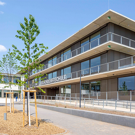 Die Eichendorffschule (Grundschule, auslaufende Werkrealschule und aufbauende Gemeinschaftsschule) liegt im Stadtbezirk Bad Cannstatt und ist eine Schule mit sport- und bewegungserzieherischem Schwerpunkt. Sie ist außerdem Modellstandort für inklusive Beschulung. Dafür ist ein erweitertes Raumprogramm gemäß pädagogischem Planungsprozeß und unter Berücksichtigung der Inklusion nötig. Das gemäß Gemeinderatsdrucksache 298/2013 am 20. Juni 2013 beschlossene Raumprogramm beinhaltet für die Eichendorffschule eine Programmfläche von 5259 Quadratmeter inklusive Inklusion und Ganztagsbetreuung (Mensa- und Küchenbereich). Zusätzlich wurden 24 Quadratmeter für die Umsetzung der Kooperation mit der Stuttgarter Musikschule beschlossen. Zusätzlich beinhaltet das Projekt eine Zweifeldsporthalle mit einer Fläche von 1384 Quadratmetern.
