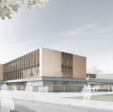 Siegerentwurf für den Neubau des Elly-Heuss-Knapp-Gymnasiums von Hausmann Architekten. Visualisierung: Rendertaxi