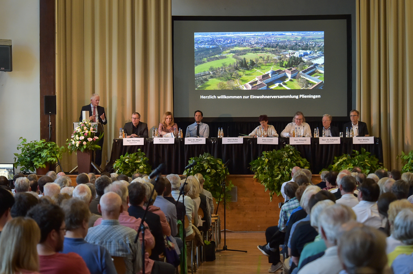 Die Einwohnerversammlung in Plieningen fand am Montag, 7. Mai 2018, in der Turn- und Versammlungshalle in der Paracelsusstraße 44 statt. Auf der Einwohnerversammlung beantwortete die Stadtspitze die Fragen der Bürgerinnen und Bürger und diskutierte mit ihnen die zukünftige Entwicklung des Stadtbezirks.