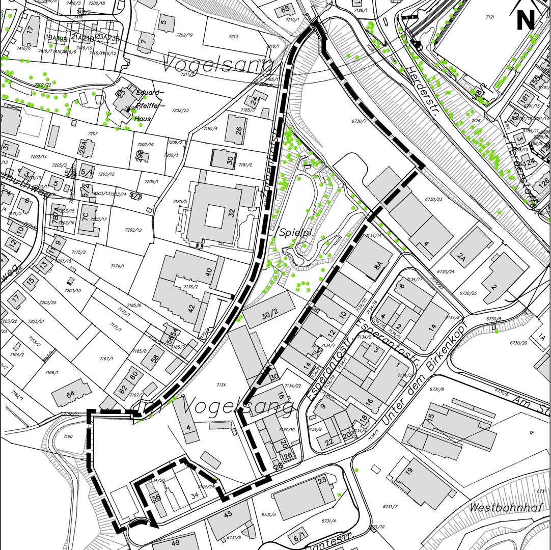 Voraussetzung hierfür ist die Verlagerung der Jugendverkehrsschule an einen anderen geeigneten Standort. Als lagemäßig günstig zu beurteilen ist hierfür das städtische Grundstück (Flurstück 7134) im Bereich zwischen Zamenhofstraße und der Straße Unter dem Birkenkopf in Stuttgart-West. Da sich die geplanten baulichen Anlagen einschließlich Übungsparcours nach derzeitigem Planungsstand innerhalb einer festgesetzten öffentlichen Grünfläche mit dem Nutzungszweck „öffentliche Grünanlage“ und damit außerhalb der überbaubaren Fläche des rechtskräftigen Bebauungsplans Im Vogelsang-Westbahnhof (Stgt 829) 1981/1 befinden, wird eine Bebauungsplanänderung notwendig.
