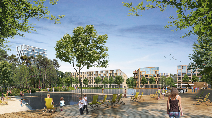 Der Siegerentwurf sieht einen zentralen Platz mit einem See vor. Bild: Steidle Architekten