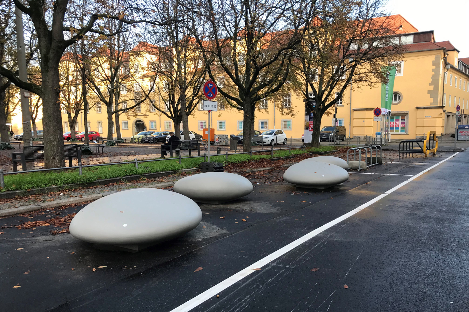 2025 Interimsgestaltung zur schnellen Umsetzung des Konzepts in der Kronprinzschleife: Aktuell wird die Kronprinzschleife interimsweise umgestaltet. Die öffentlichen Stellplätze in der Kronprinzstraße, Lange Straße und Gymnasiumstraße werden umgewidmet, während Sonderstellplätze wie Behindertenstellplätze erhalten bleiben. Mobile Fahrradbügel, E-Scooter-Stellplätze, Abstellplätze für Lastenräder und Roller sowie Sitzelemente erhöhen die Aufenthaltsqualität und laden zum Verweilen ein. Eine Besonderheit ist die Erweiterung der Lieferzonen. Die Maßnahmen erfordern keine baulichen Eingriffe und sind daher kostengünstig und schnell umsetzbar. Nach einer Bewertung und Evaluation der Maßnahmen folgt eine langfristige Umgestaltung. Dialog mit Anwohnenden vor der Umgestaltung