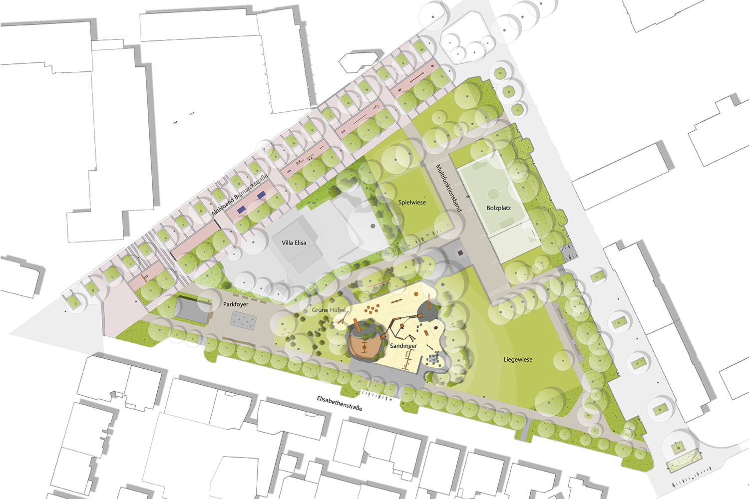 Am 16. November 2017 hat der Gemeinderat den Grundsatzbeschluss zur Umgestaltung der Elisabethenanlage nach den Vorentwurfsplänen von Schwarz und Partner Landschaftsarchitekten, Ludwigsburg, mit einem Kostenrahmen von rund 1,75 Millionen Euro brutto gefasst. Schwerpunktmäßig werden der Kinderspielbereich erneuert, eine ruhige und übersichtliche begrünte Fläche geschaffen, der Bolzplatz erneuert und ein neues "Aktivband" in der Bismarckstraße mit Bewegungsangeboten für alle Altersklassen angeboten.