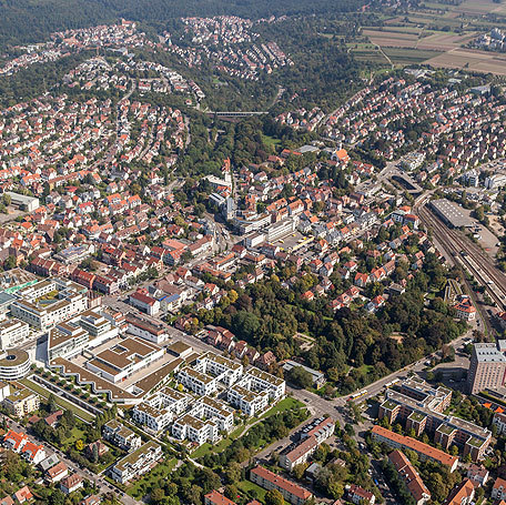 Diese Stadtbereiche bilden die Schwerpunkte des Untersuchungsgebiets, das im Norden vom Rathaus bis im Süden zum Bahnhof reicht. Das Untersuchungsgebiet wird nördlich der Hauptstraße nach Westen durch die Schwabengalerie, nach Norden mit dem Rathausumfeld und durch den Lutzweg und nach Osten durch die Haugstraße begrenzt. Die beiden Quartiere sind durch eine starke Nutzungsmischung geprägt, die sich auf der Südseite der Hauptstraße fortsetzt. Entlang der Emilienstraße und am Rand des Stadtparks ist überwiegend Wohnnutzung vorhanden. Dieser Untersuchungsbereich wird nach Westen durch die Robert-Koch-Straße begrenzt, die selbst nicht mehr im Untersuchungsgebiet liegt. Nach Osten bildet die Herrenberger Straße die Untersuchungsgebietsgrenze, die neben dem Weg durch den Stadtpark eine wichtige Verbindung zwischen Bahnhof und Stadtmitte über den Schillerplatz darstellt. Nach Süden bilden die Vollmoellerstraße sowie das Bahnhofsumfeld mit Busbahnhof den Rand des Untersuchungsgebiets.
