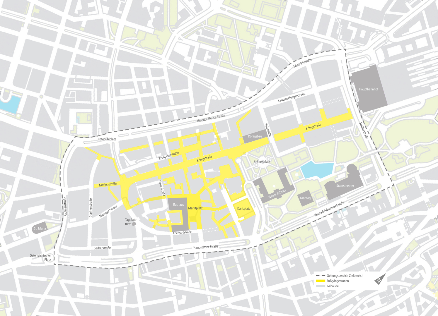 Die Tempo-20-Regelung gilt für die Erschließungsstraßen innerhalb des Cityrings, über die auch Parkhäuser und Tiefgaragen erreicht werden können. Auf dem Cityring selbst (Paulinenstraße, Theodor‐Heuss‐Straße, Hauptstätter Straße, Arnulf‐Klett‐Platz/Schillerstraße sowie im Planietunnel) gilt weiterhin die bisherige Geschwindigkeitsregelung von 40 Stundenkilometer.