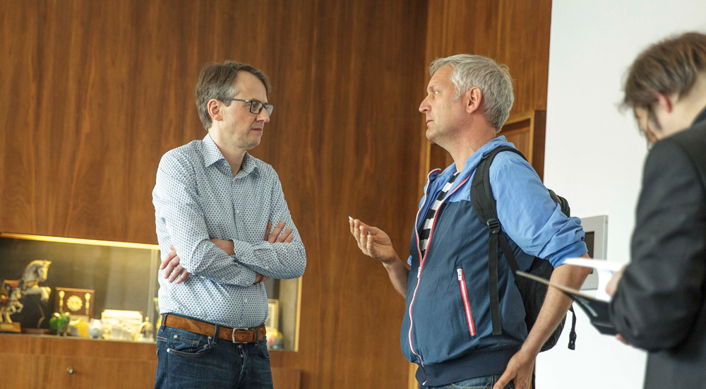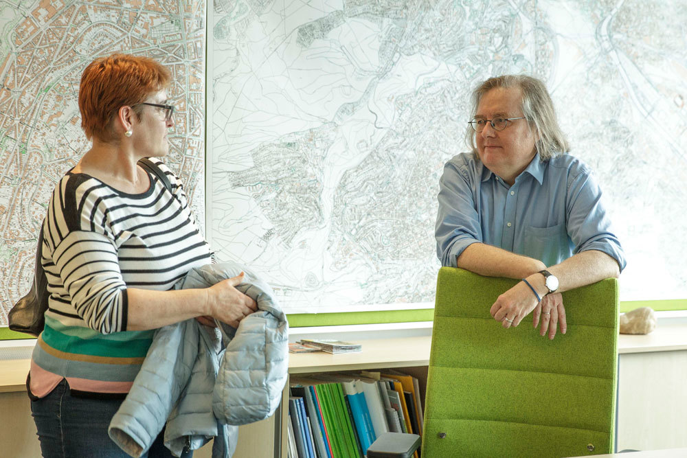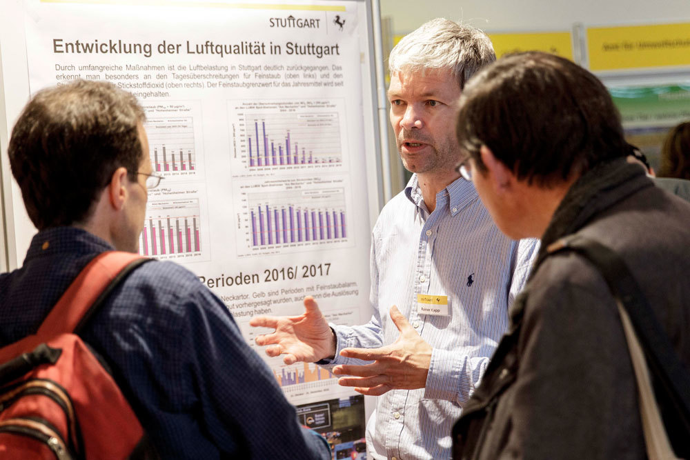 Stadtklimatologe Dr. Ulrich Reuter, Wolfgang Forderer, Leiter der Abteilung Mobilität und Uwe Schickedanz, Leiter der Niederlassung Stuttgart vom Deutschen Wetterdienst, stellten sich in einem Experten-Talk den Fragen der Bürger zur Luft und nachhaltigen Mobilität in Stuttgart. Die Diskussion wurde live ins Internet übertragen und ist zu sehen unter:www.schawa.tv/experten-talk