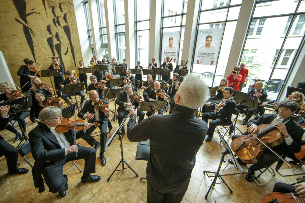Die Stuttgarter Philharmoniker, das Orchester der Landeshauptstadt, gaben Kostproben aus ihrem Repertoire und spielten immer wieder zu kleinen Konzerten auf: Zur Eröffnung spielte das Blechbläserensemble auf der Rathaustreppe, im Erdgeschoss spielte das Orchester unter der Leitung von Chefdirigent Dan Ettinger und vor dem Panoramafenster im vierten Obergeschoss wurde Kammermusik gespielt.