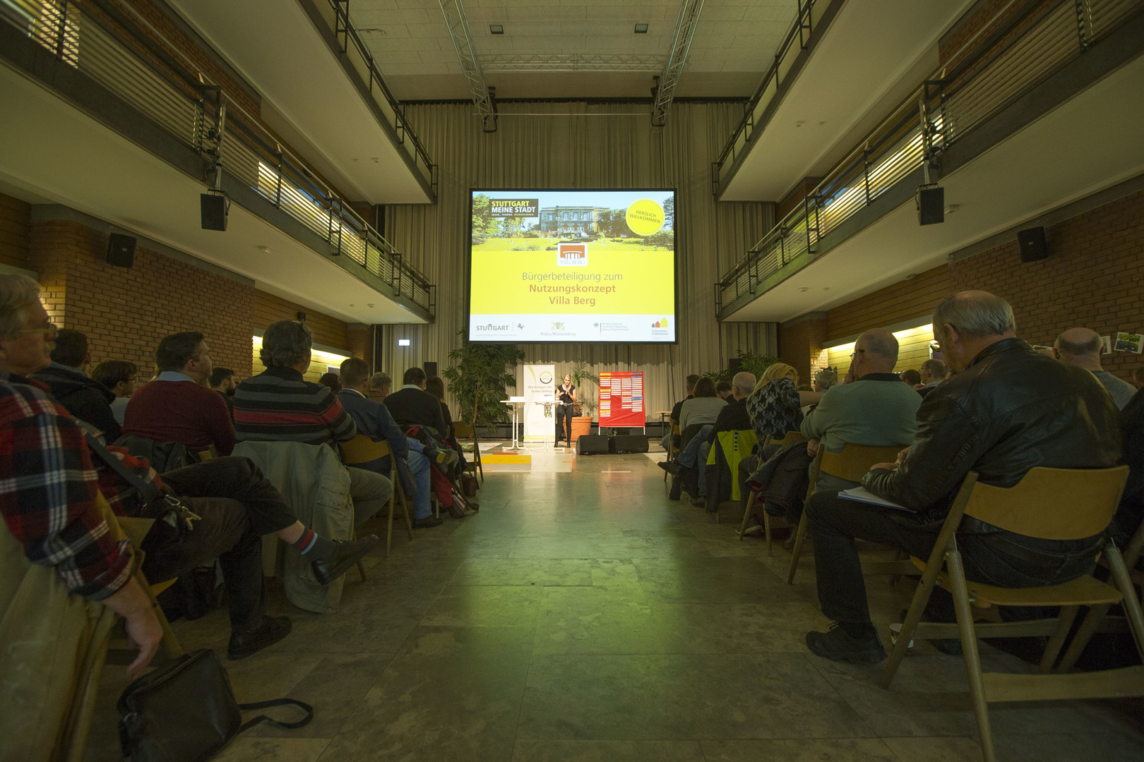 AmMittwoch, 20. Juli 2016, ist die informelle Bürgerbeteiligung zur Zukunft der Villa Berg gestartet. Interessierte waren zur Auftaktveranstaltung in die Johann-Friedrich-von-Cotta-Schule eingeladen. Vor Beginn der Veranstaltung konnte bereits ab 18 Uhr eine Ausstellung vor Ort angeschaut werden. Darüber hinaus gab es Infos zum baulichen Zustand und Denkmalschutz. Außerdem wurden Beiträge der Bürger gezeigt. Der Abend begann um 19 Uhr mit einer Einführung durch Oberbürgermeister Fritz Kuhn. Im Anschluss informierten Experten über den Denkmalschutz, den Baubestand sowie den Beteiligungsprozess. Doch das Wichtigste an diesem Abend war der Beginn des Beteiligungsprozesses zur Entwicklung eines Nutzungskonzepts. Dazu wurden verschiedene Themengruppen gebildet.