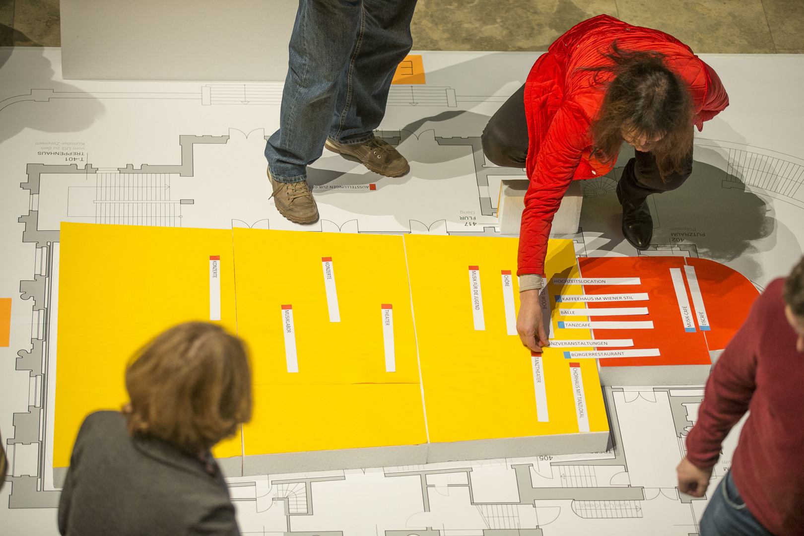 historischen Gebäudes sinnvoll erscheinen. Jeder Teilnehmer konnte sich für zwei Themengruppen entscheiden und zu jedem Bereich wurde dann rund 40 Minuten diskutiert, bevor die Gruppen wechselten.